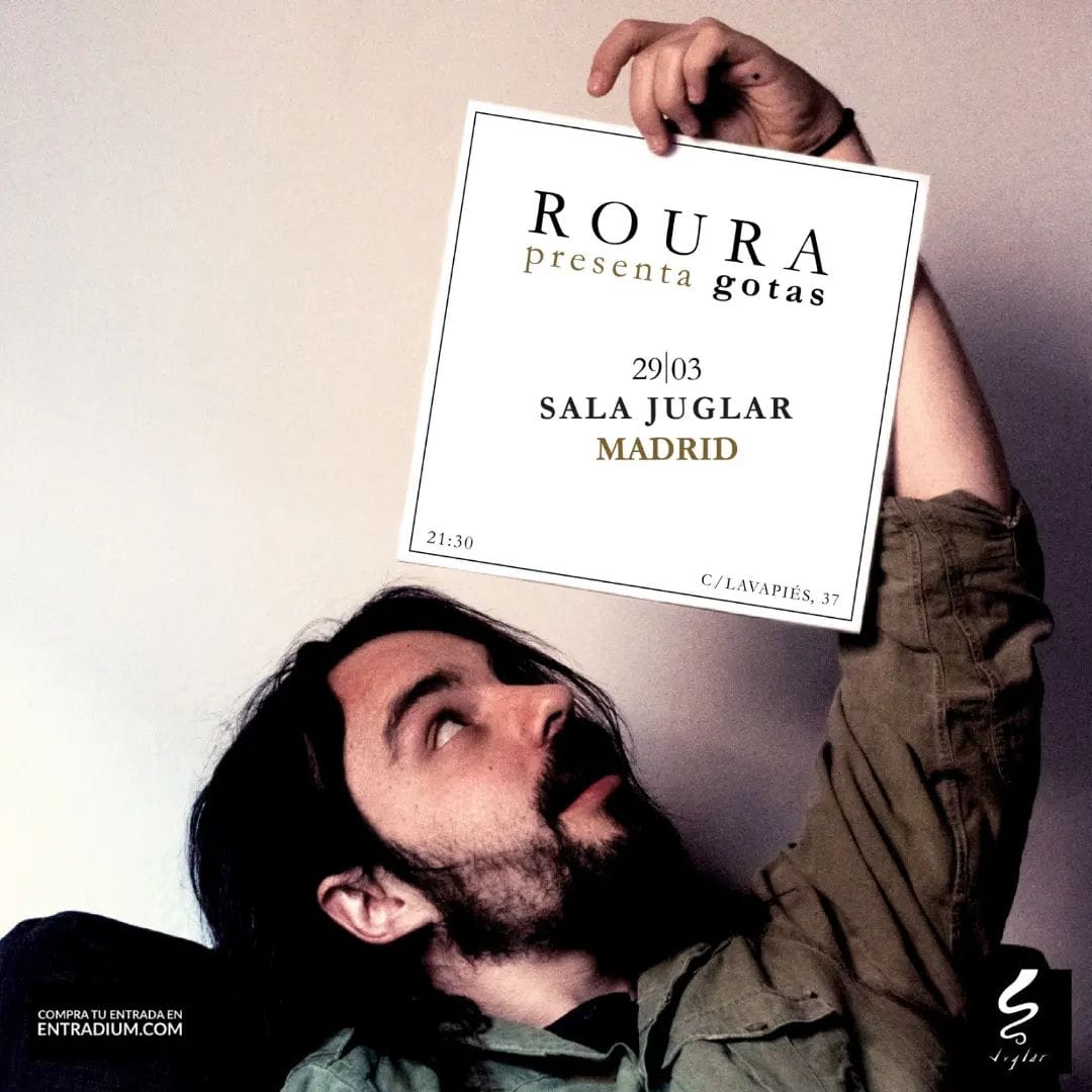 Gotas será presentado en concierto en Madrid el miércoles 29 de marzo en la Sala Juglar. Las entradas están disponibles en el siguiente enlace de entradium: https://entradium.com/events/roura-en-juglar-presentacion-gotas