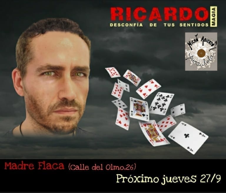 Este jueves 27 de septiembre a las 20.00h comenzamos con un espectáculo de magia de la mano de Ricardo y posteriormente nuestro micro abierto para músicos, cantantes y poetas.